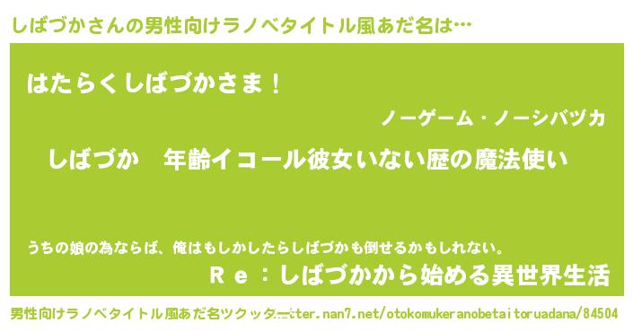 | 意味不明あだ名 | 『ヨモギ科しばづか属』『自称しばづか』 |