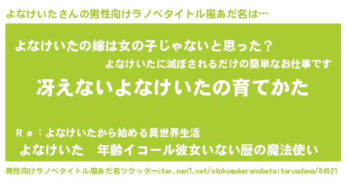 | 胡散臭い通販商品みたいなあだ名 | 『伝統あるサプリメント…その名も「よなけいた」』 |