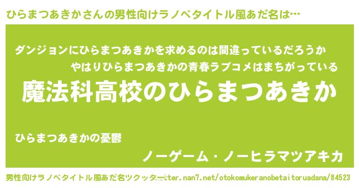 | 意味不明あだ名 | 『自称ひらまつあきか』 |