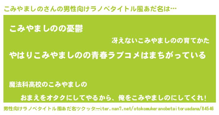 | 女子向けラノベタイトル風あだ名 | 『こみやましのの雑貨屋さん』 |
