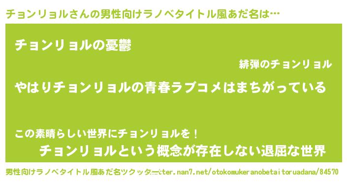 | ファンタジー風あだ名 | 『エターナルチョンリョルー』 |