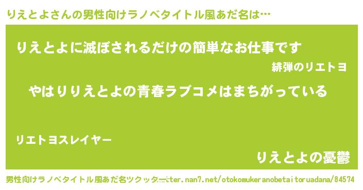 | ファンタジー風あだ名 | 『エターナルリエトヨー』『リエフェル』 |