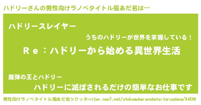 | 女子向けラノベタイトル風あだ名 | 『闇のハドリー』 |