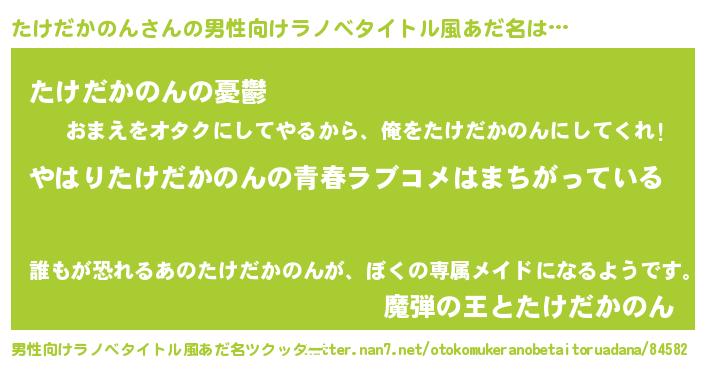 | 恥ずかしいあだ名 | 『たけっちょ』『プリティーたけだかのん』 |