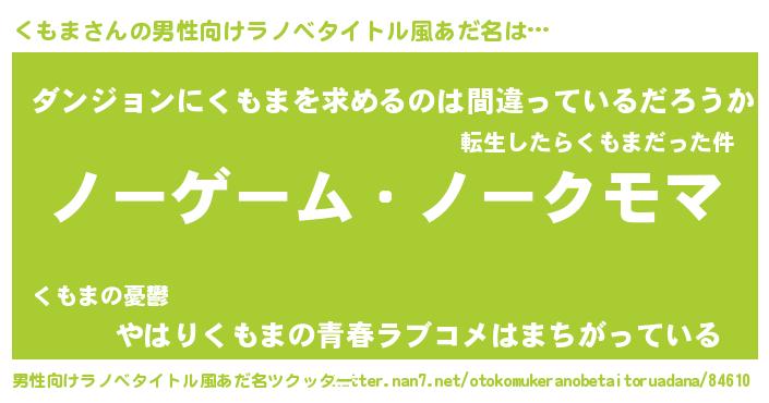 | 欧米人風あだ名 | 『ダニエルくもま』『ウサインくもま』 |