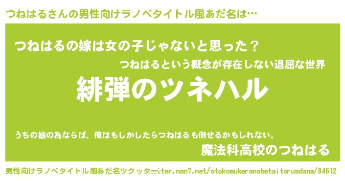 | 胡散臭い通販商品みたいなあだ名 | 『信頼と実績のサプリメント…その名も「つねはる」』 |