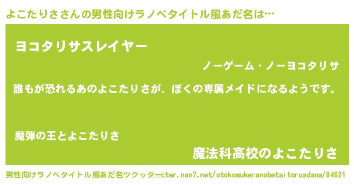 | 意味不明あだ名 | 『永久保存よこたりさ』『自称よこたりさ』 |
