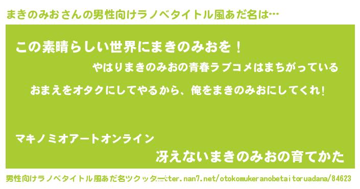 | 女子向けラノベタイトル風あだ名 | 『まきのみお夫妻のなれそめ』 |