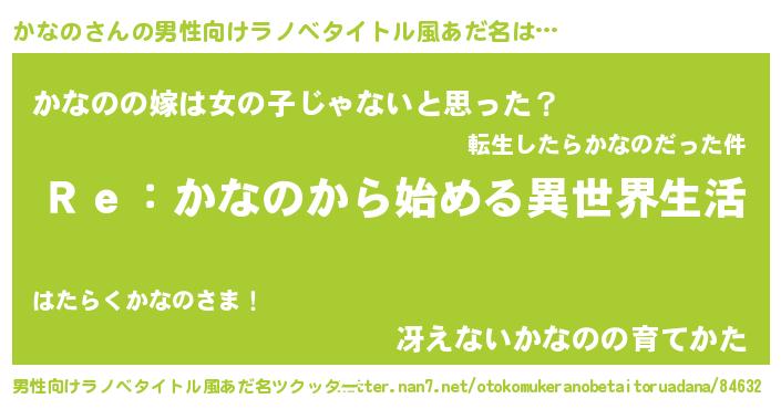 | 女子向けラノベタイトル風あだ名 | 『かなのストレイドッグス』 |