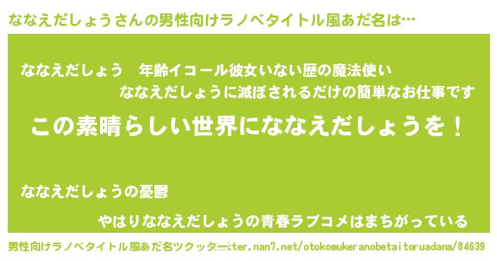 意味不明あだ名 | 『住所不定無職ななえだしょう(12歳)』 |