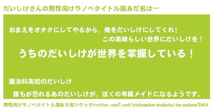 | 女子向けラノベタイトル風あだ名 | 『男装だいしけの憂鬱な任務』 |