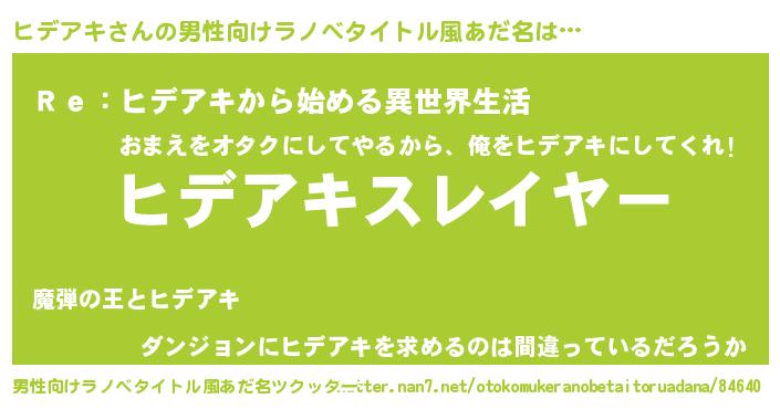 | 女子向けラノベタイトル風あだ名 | 『婚約破棄系悪役ヒデアキに転生したので、保身に走りました。』 |