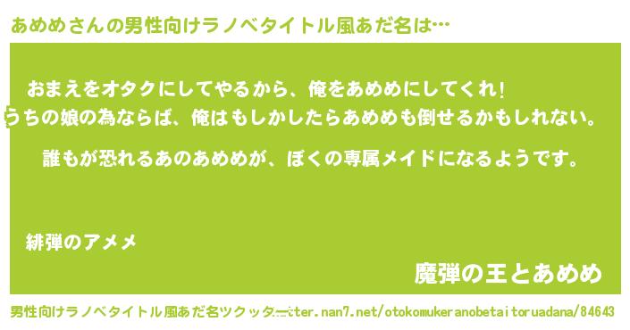 | 女子向けラノベタイトル風あだ名 | 『異世界でカフェあめめを開店しました。』 |