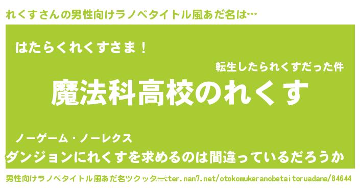 | 女子向けラノベタイトル風あだ名 | 『れくすなんてお断りですっ。』 |