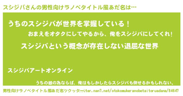 | ヒーロー風カッコイイあだ名 | 『ネオスシジバ』『ウルトラスシジバマン』 |