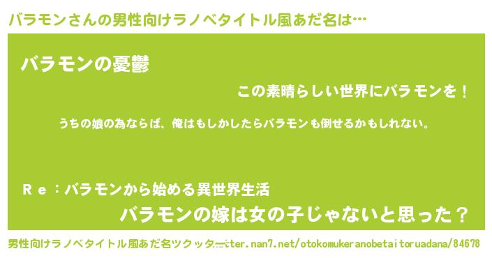 | 女子向けラノベタイトル風あだ名 | 『バラモンの婚約者』 |