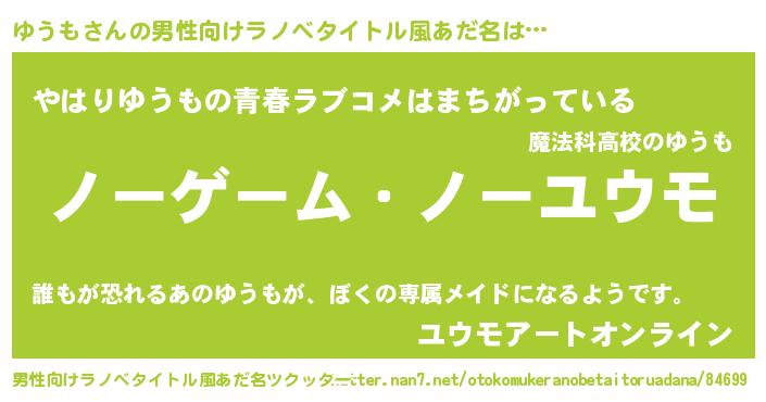 | ポケモン風あだ名 | 『ユックウザ』『ユウモダネ』 |