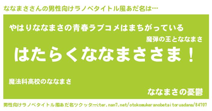 | ヒーロー風カッコイイあだ名 | 『ウルトラななまさマン』『仮面ナナダー』 |