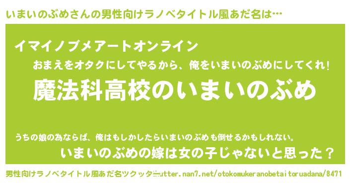 | 胡散臭い通販商品みたいなあだ名 | 『ガンによく効く高麗人参…その名も「いまいのぶめ」』 |