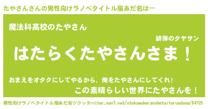 | 意味不明あだ名 | 『自称たやさん』『めかぶ科たやさん属』 |