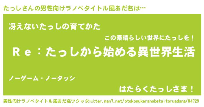 | 女子向けラノベタイトル風あだ名 | 『闇のたっし』『首の姫と首なしたっし』 |