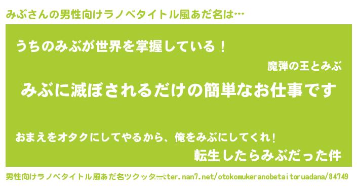 | 意味不明あだ名 | 『ニラ科みぶ属』『住所不定無職みぶ(98歳)』 |