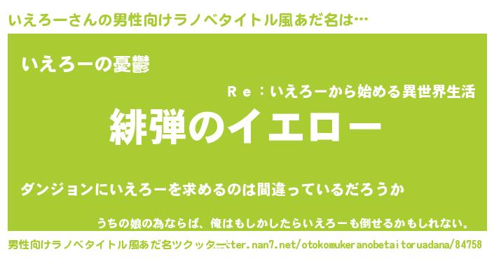 | 意味不明あだ名 | 『ペロリンいえろー』『自称いえろー』 |