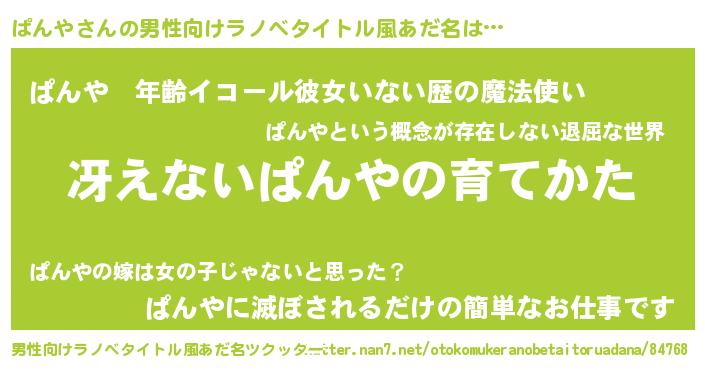 | ヘコむあだ名 | 『ぱんや(小並感)』『ぱんっぺ』 |