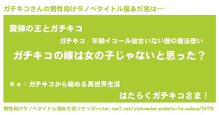 | ヒーロー風カッコイイあだ名 | 『銀牙騎士ガチ』『仮面ガチダー』 |