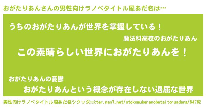 | 意味不明あだ名 | 『住所不定無職おがたりあん(39歳)』 |