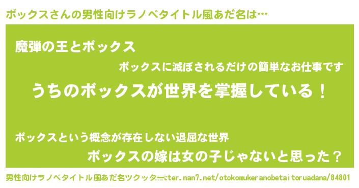 | 胡散臭い通販商品みたいなあだ名 | 『あなたにだけ特別に提供する世界で10本だけ現存している希少なブランデー…その名も「ボックス」』 |