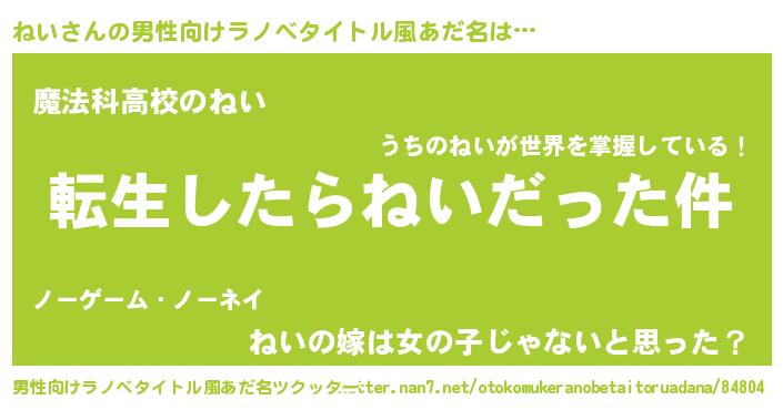 | 意味不明あだ名 | 『なめこ科ねい属』『自称ねい』 |