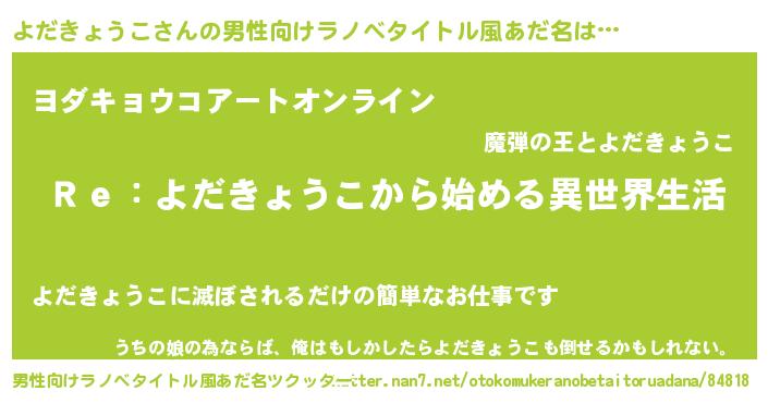| 意味不明あだ名 | 『自称よだきょうこ』 |