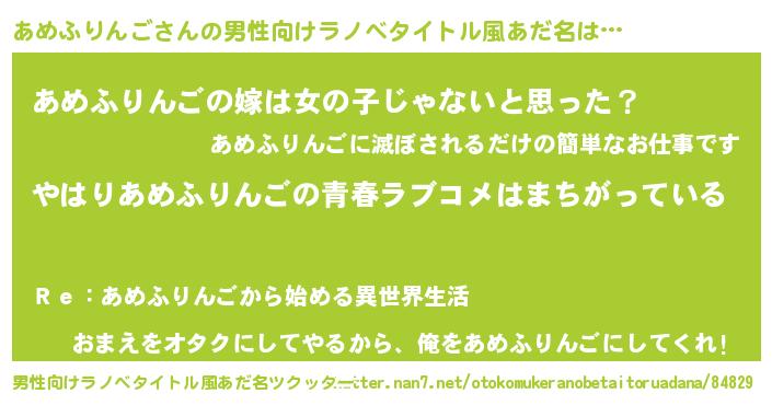 | 女子向けラノベタイトル風あだ名 | 『あめふりんご伯爵の花嫁』 |