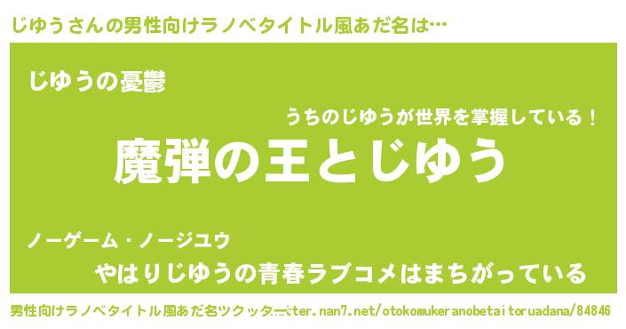 | 女子向けラノベタイトル風あだ名 | 『じゆうが死なない童話 林檎のじゆうの診療簿』 |
