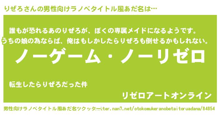 | ヘコむあだ名 | 『りぜろ(小並感)』『りぜにゅー』 |