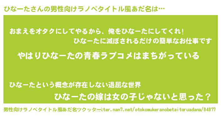 | 女子向けラノベタイトル風あだ名 | 『ひなーたの雑貨屋さん』 |