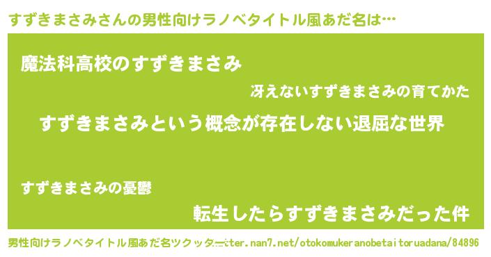 | 女子向けラノベタイトル風あだ名 | 『すずきまさみの契約王妃』 |