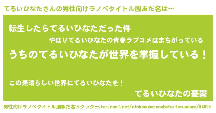 | 胡散臭い通販商品みたいなあだ名 | 『億万長者になれるブレスレット…その名も「てるいひなた」』 |
