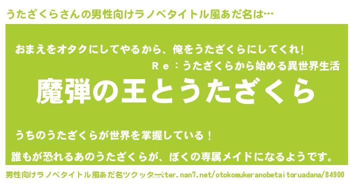 | 意味不明あだ名 | 『住所不定無職うたざくら(62歳)』 |
