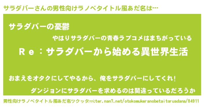 | 女子向けラノベタイトル風あだ名 | 『サラダバーストレイドッグス』 |