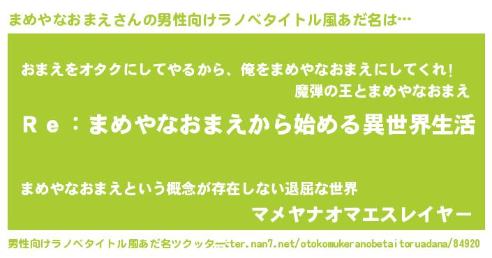 | ヒーロー風カッコイイあだ名 | 『サイバー戦士マメヤナオマエ』 |