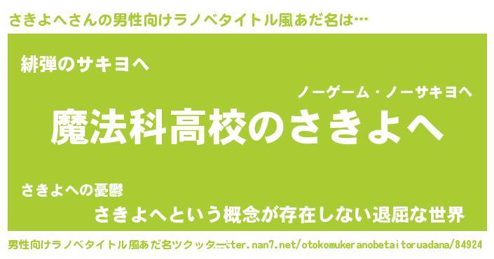 さきよへさんの男性向けラノベタイトル風あだ名をツクッター!