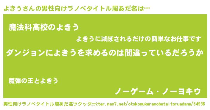 よきうさんの男性向けラノベタイトル風あだ名をツクッター!