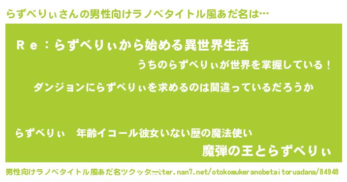 らずべりぃさんの男性向けラノベタイトル風あだ名をツクッター!