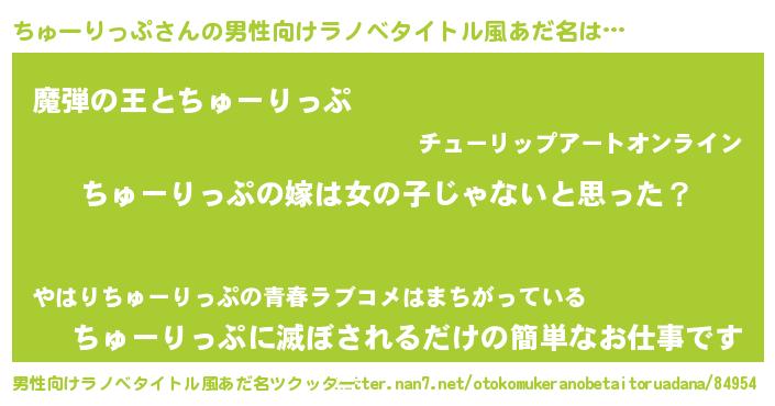 | 女子向けラノベタイトル風あだ名 | 『ちゅーりっぷ様がみてる』 |