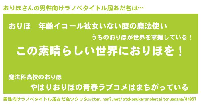 | 意味不明あだ名 | 『住所不定無職おりほ(6歳)』『自称おりほ』 |