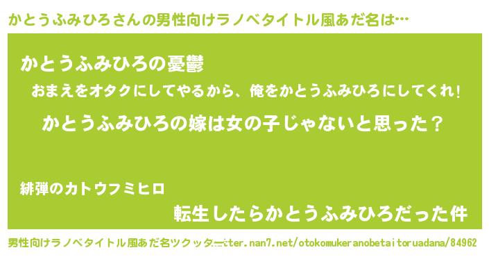 | 意味不明あだ名 | 『とにかく怪しいかとうふみひろ』 |
