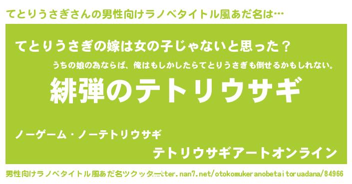 | 意味不明あだ名 | 『とにかく怪しいてとりうさぎ』 |