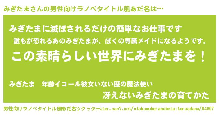 | 意味不明あだ名 | 『住所不定無職みぎたま(12歳)』 |